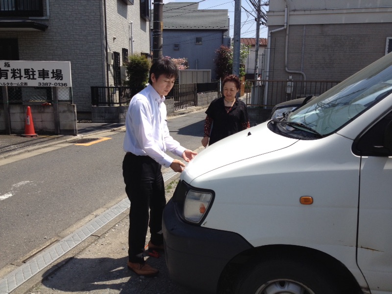 賛美隊が出発しようとしたらバッテリーが上がってました。 工賃1万円ねと冗談を言いながら、快く修理に駆けつけてくださった三本松さんです。