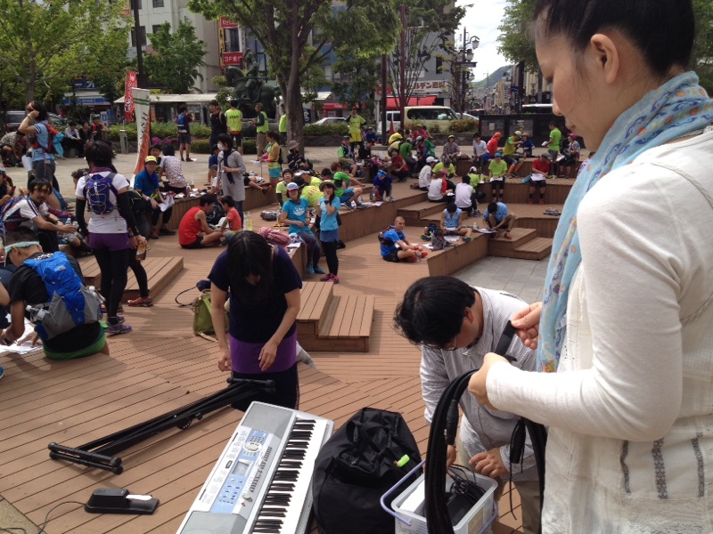 路上ライブの場所は、ウォークラリーの終点となっていました。 参加者の方々が続々とゴールされています。 名古屋 みんごす