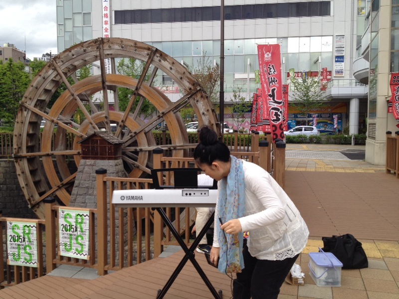 上田駅前に水車がありました。 ちゃんと動いています。 ここで路上ライブします。 名古屋 みんごす
