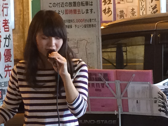 ジョイちゃんの路上ライブ。 皆さん聴いています!