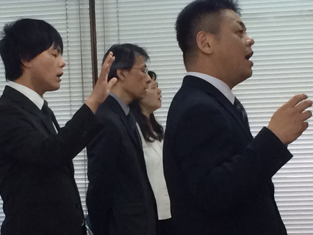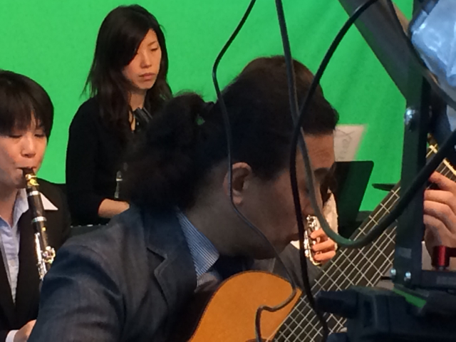 まだ全員集まってませんが^_^;第二礼拝の前半賛美に向けて練習するPure7です。
