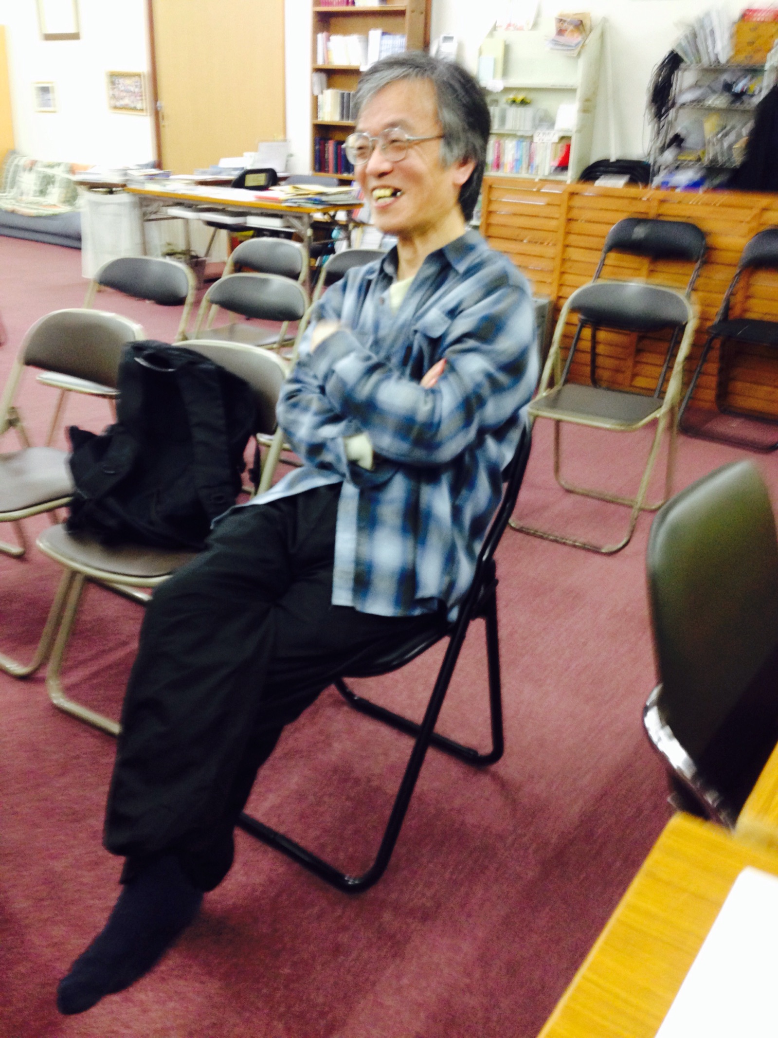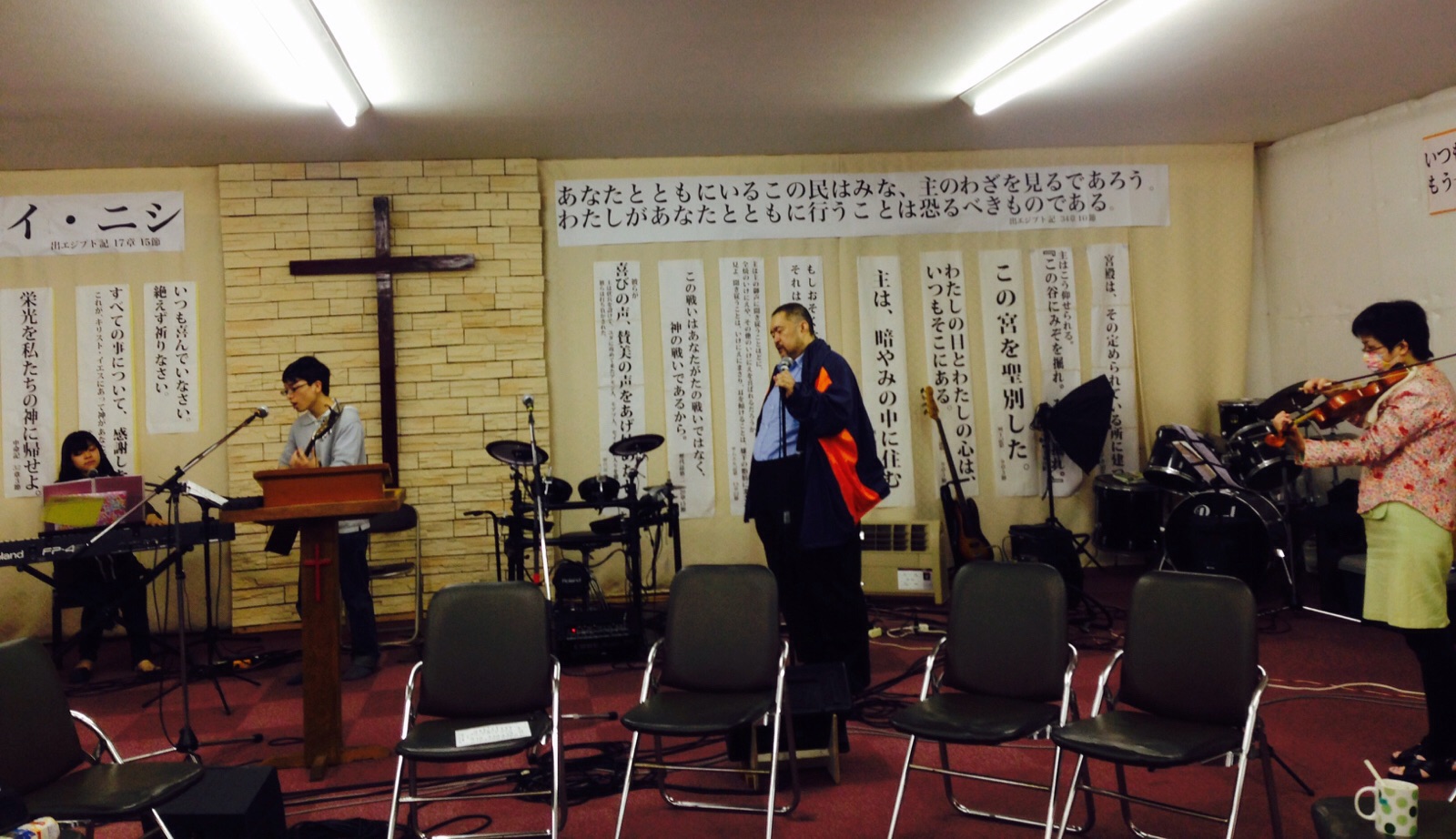 Pure7の賛美の練習を視察するFFの坂井さん(^-^)