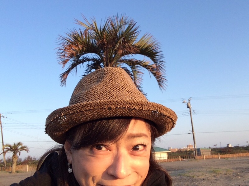 どう? ヤシの木、頭から生えてるように見えるかい? ハルミ