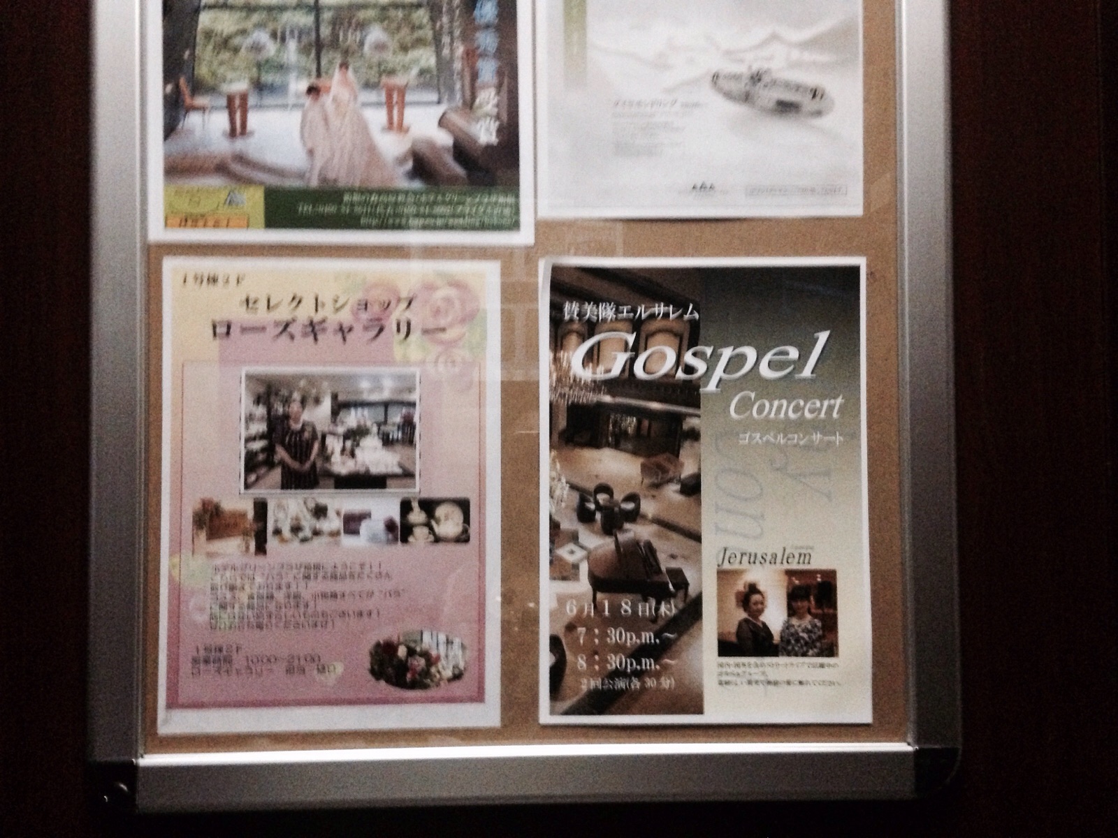 毎月、このようにエレベーターの中にもロビーコンサートの紹介のチラシが貼ってあります‼︎ エルサレム mariko