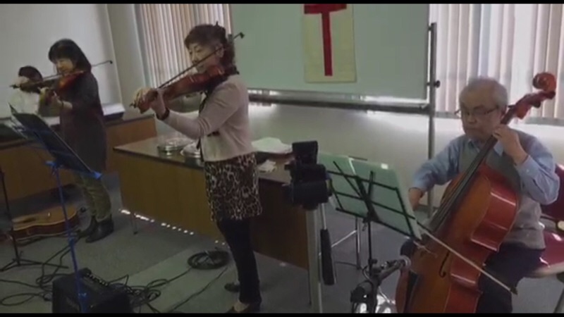 大阪では、日曜日午後2時からインターナショナル礼拝が始まりました。通訳者は目がちょっと腫れているので、メガネをかけているそうですが、いつものK君です。別人に見えます。
