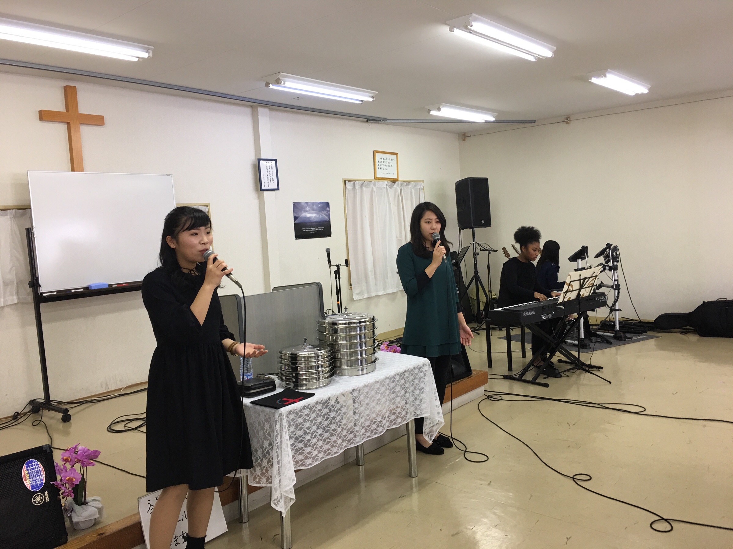 礼拝前のお祈りです。喜びの声を賛美しています。