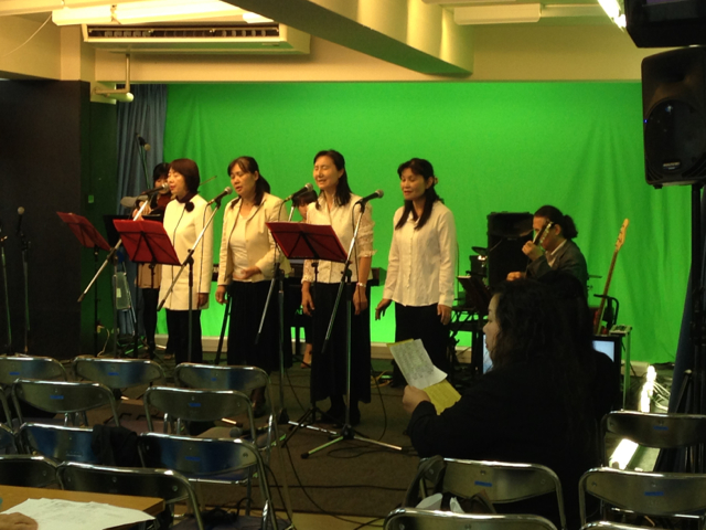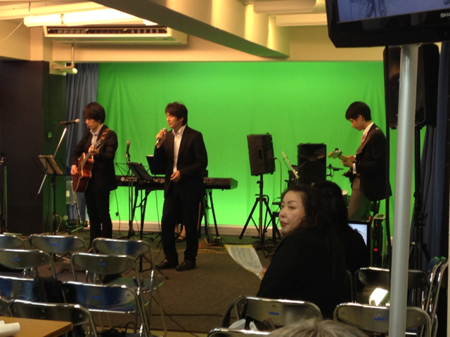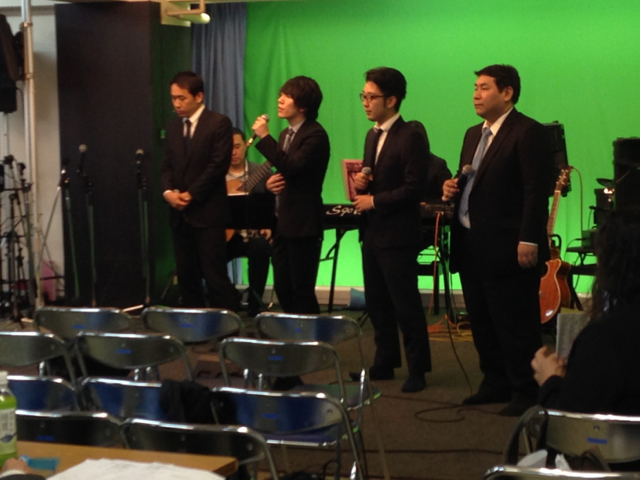 「エルサレムの平和のために祈れ」を賛美するラ・スポーザ。榊牧師、山川さん、小野島さん、森さんのチームです。実績のあるチームです。
