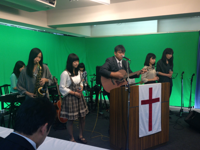 横に控えている牧師賛美チームの方々。山川さんと今村牧師です。