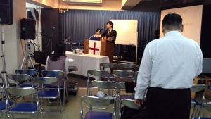 礼拝スタート。OHPの清水さん、絶妙なタイミングでシート変えていきます。