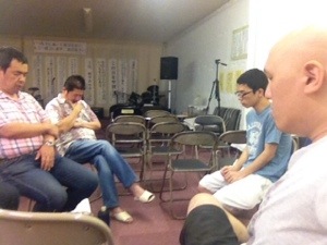 現在、男性スタッフ達がオンライン配信のためのお祈りをしていますd(^_^o)