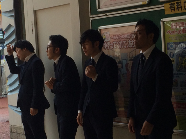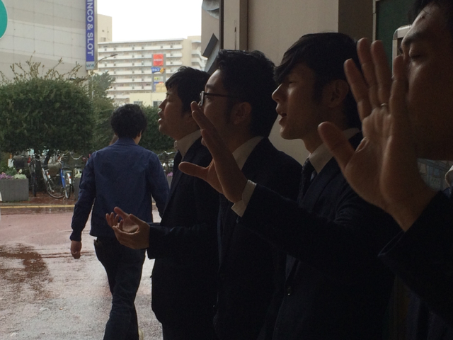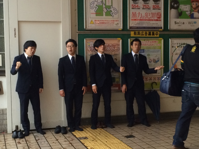 アカペラですが、駅構内に響いています!