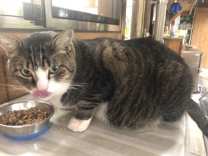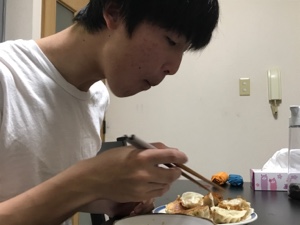 お腹が空いたらしく、冷凍餃子を焼いて食べてます。