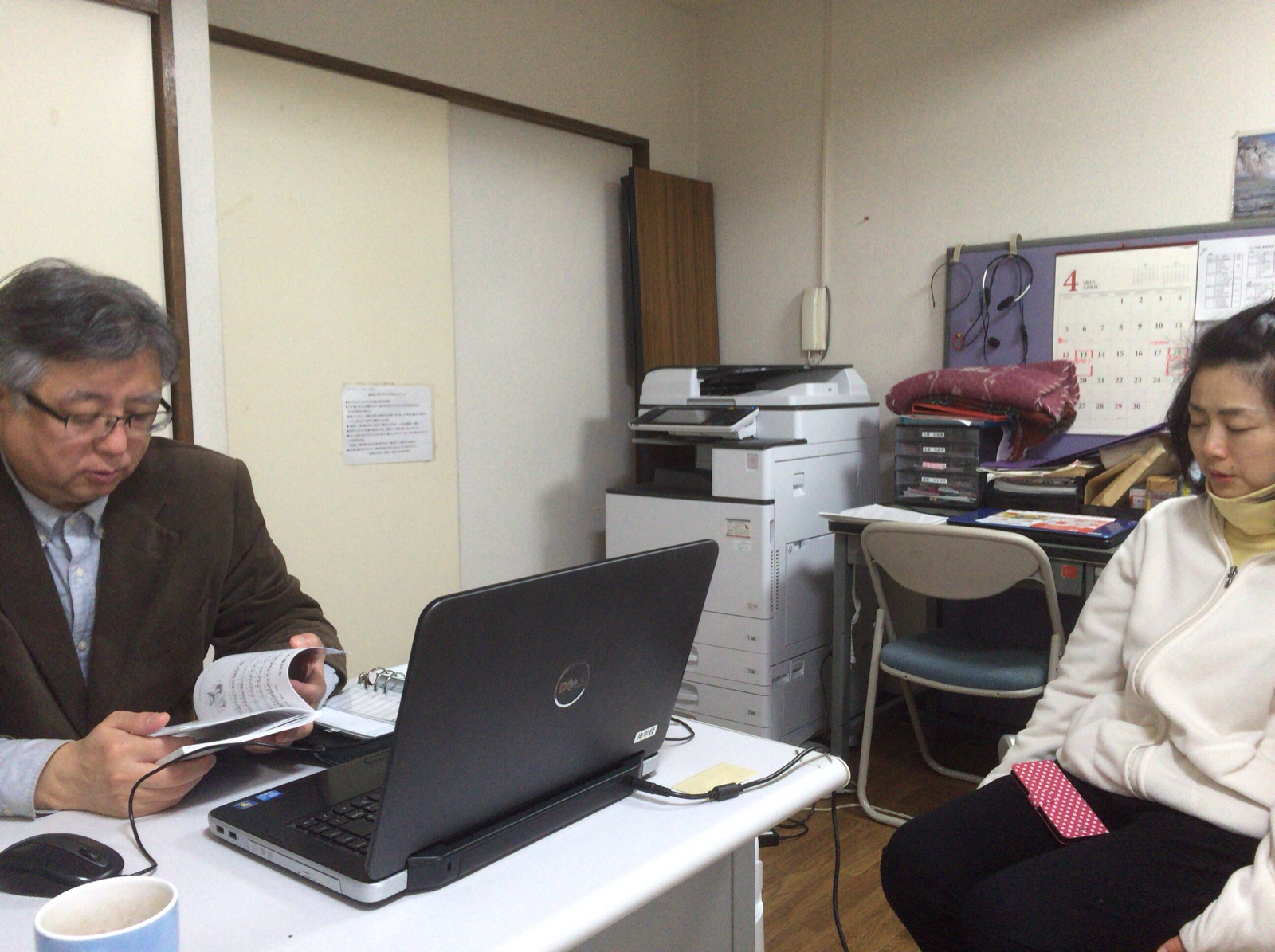 廊下でバッタリあって、新学期の授業についてのお話しをされている朋代さんとジョイさんです。 スタッフYama