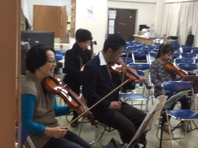 さっきまで会堂では、オーケストラの練習をしていました。 メンバーは、卒業生、現神学生、将来の神学生ですね。