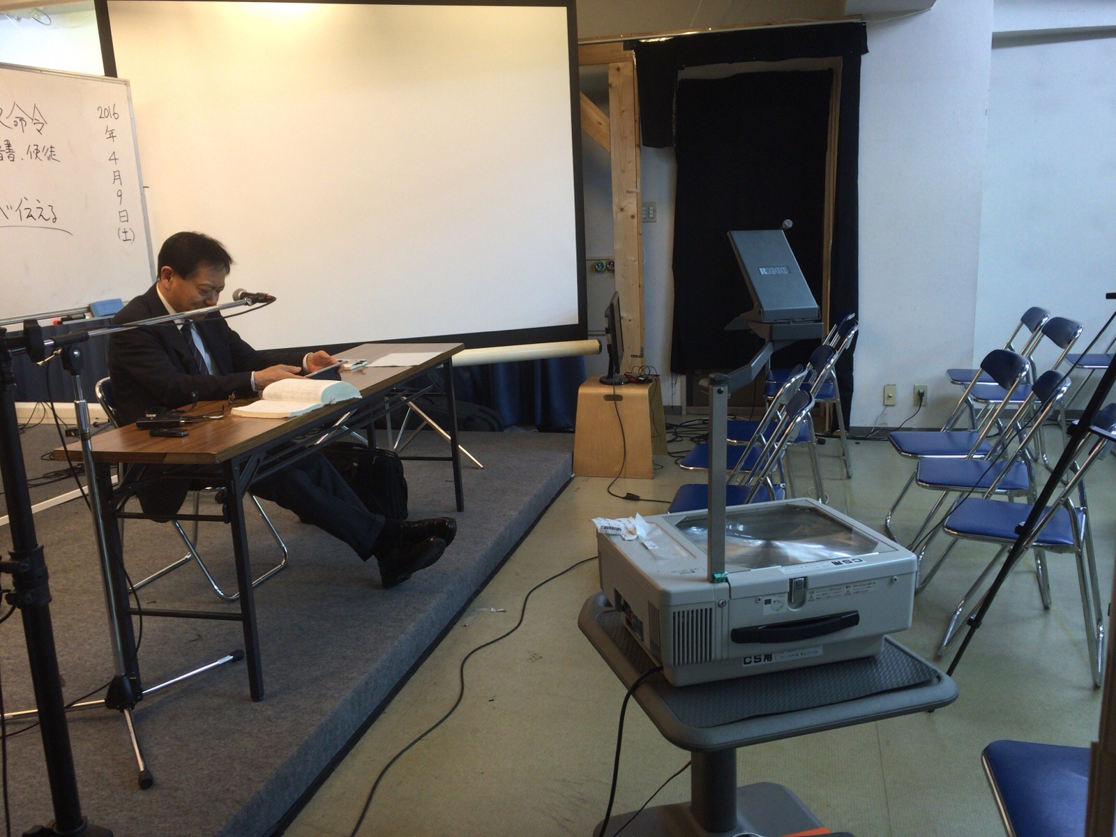 今期も土曜日の神学校授業の収録をして下さる小畑さんです! 背中を写させていただきました! スタッフ やまなか