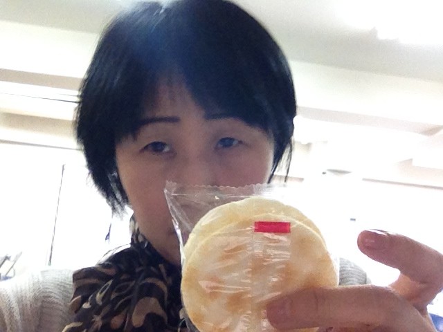 これから、試験です。神学校のスタッフJUNちゃん。 M牧師に頂いた、おせんべたべて、頑張りマフ。