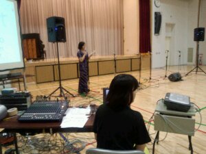 日本の歌を歌う会 日本語と英語でご挨拶。