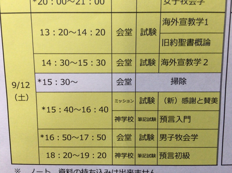 預言クラスの試験は、聖書持ち込み「可」です。 2015年度前期試験で、聖書持ち込み可の科目は、7科目になります。 (昨日ブログに6科目と記載してしまいました。大変申し訳ありませんでした。)