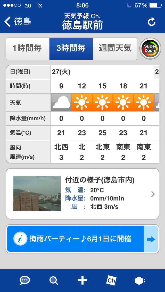 ウェザーニュースで阿波の徳島はうどん県讃岐最高28度よりは低い25度。まずまずの陽気です(^。^)