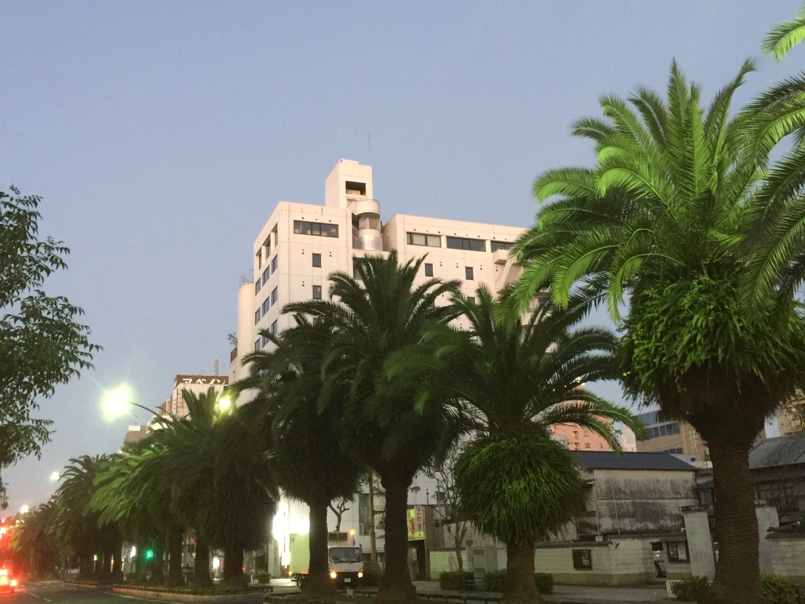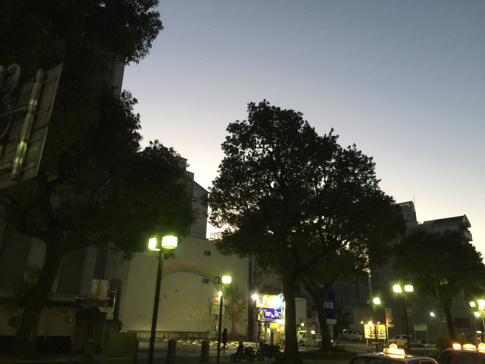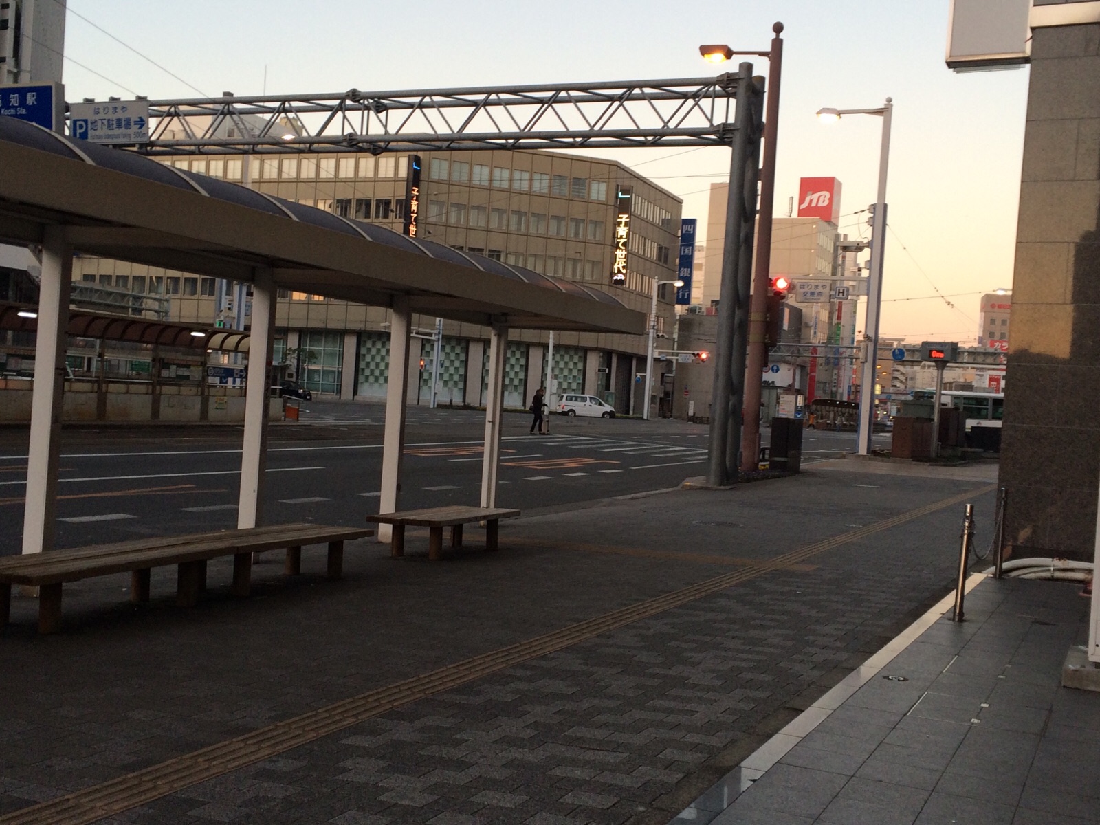 高松へ。始発の路面電車にのります。東の空が明るくなって来ました。