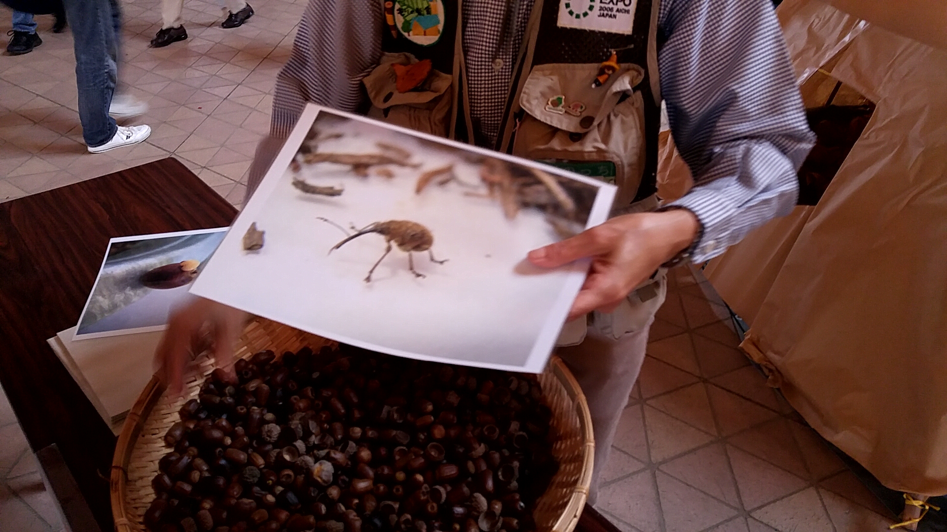 ハイイロチョッキリが、どんぐりから出てくる幼虫のお母さん