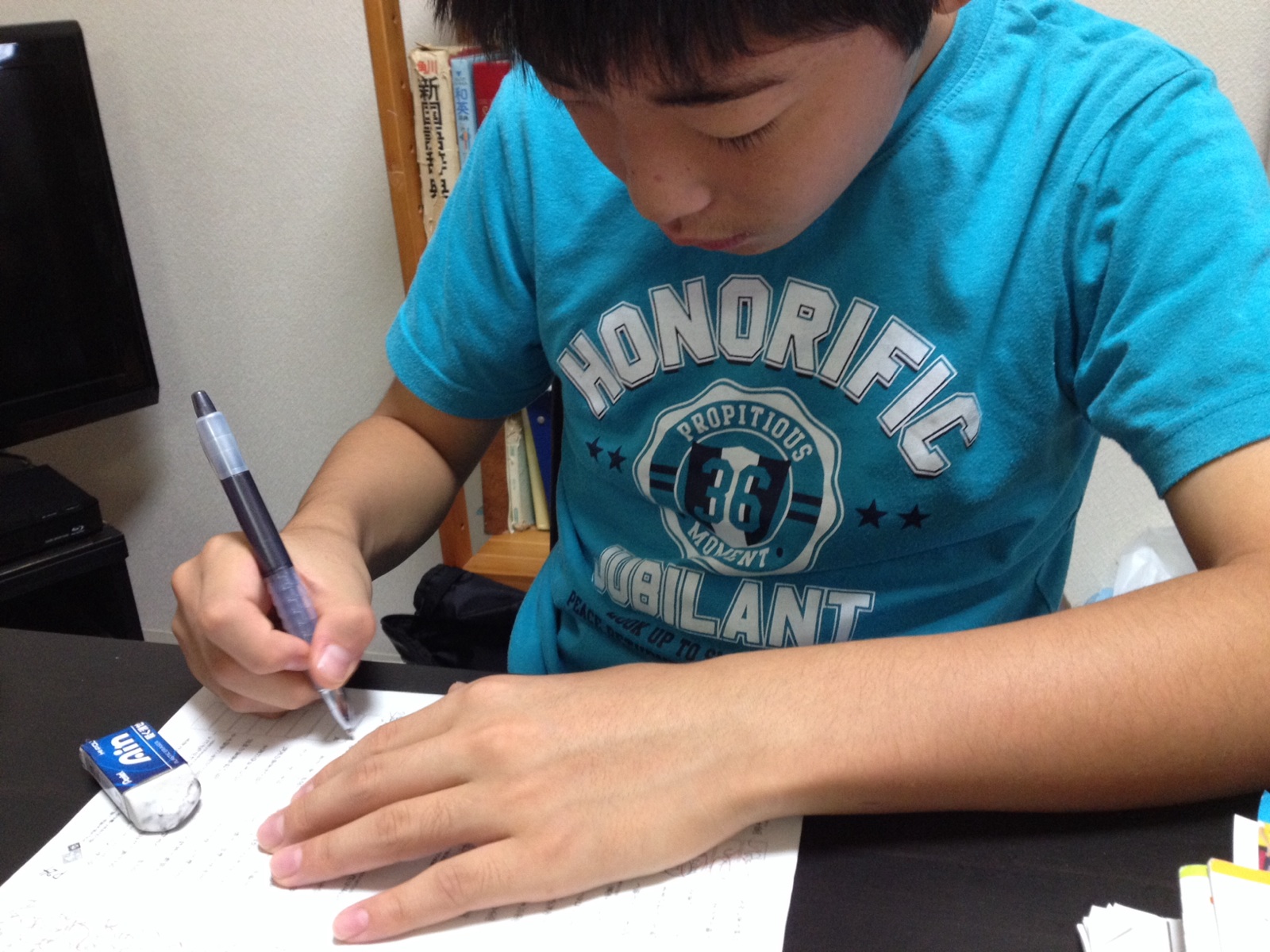始まる期末試験に備えています。実力テストがボロボロだったらしいです。。。