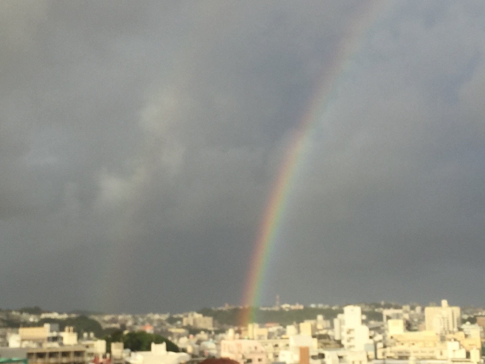 最近はあちら、こちらで虹が現されていますが、今朝も雨あがりの後に二重の虹が見えました。嬉しい〜ですね。