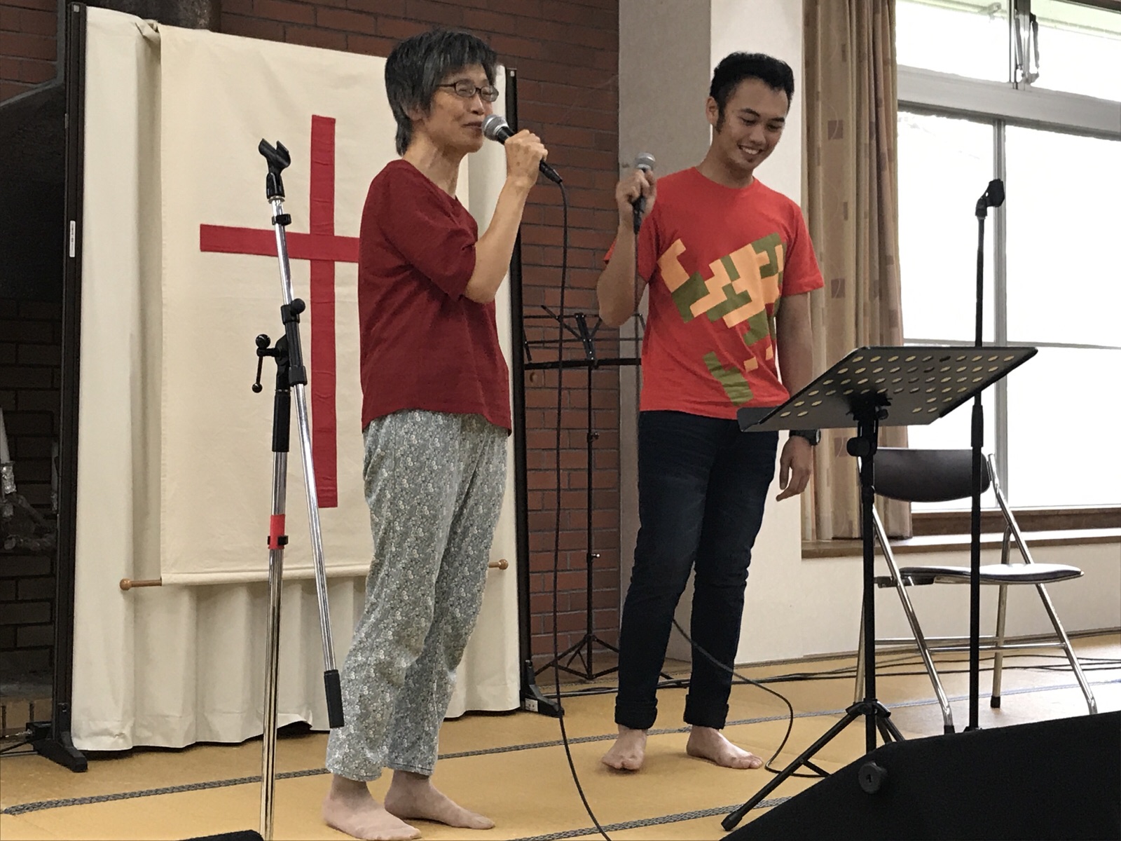 今回のキャンプに来ることが 出来て良かったことや、 バイオリンを教えることが できて嬉しかったことを 語られています。 ^o^ また、証しの中で、 笑いが起こっています♬ 鹿児島 izumi