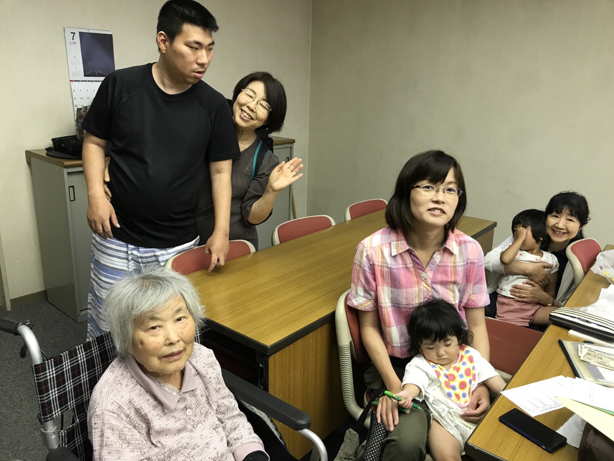 礼拝後、お祈りの時。ノンちゃん、ピースは三本指。今、東京へ向かっています。 富士フィラデルフィヤ教会 ゆか