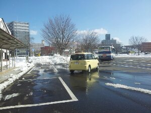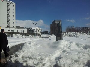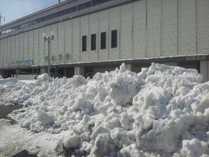 駅前は雪がいっぱいです。