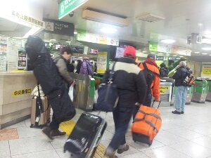 朝7時、既に東北新幹線乗り換え口には人がいっぱいです。スキーやスノボーを持った人達も沢山います。