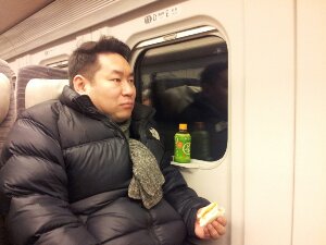真境名総主事、乗る新幹線を確認中です。