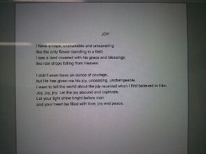 実験の合間にこっそり英語版のJOYの練習をしてます。(荒地に川のHPで歌詞と音源が聞けます。) イザヤ中嶋