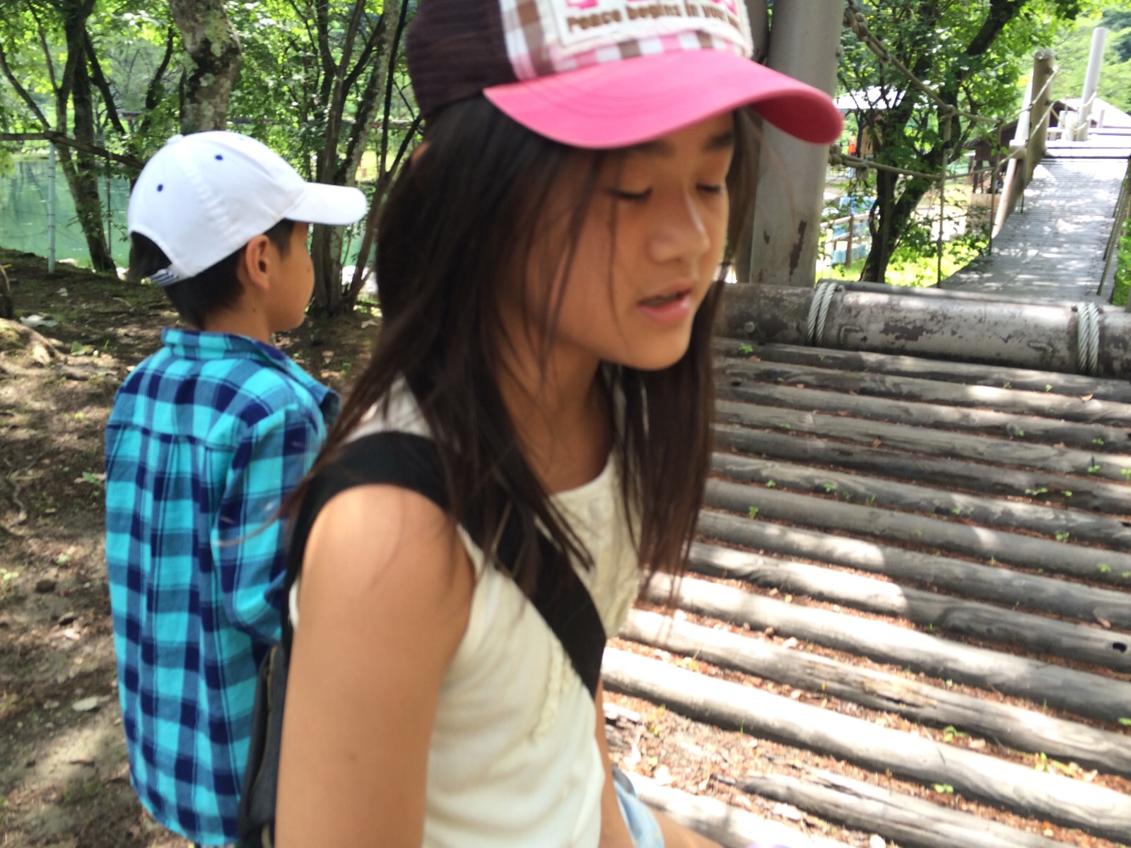 結局、橋の横の道を通りました。 ガってなんかさすの?っとゆうまくん。 レク、グリーンスポーツの森