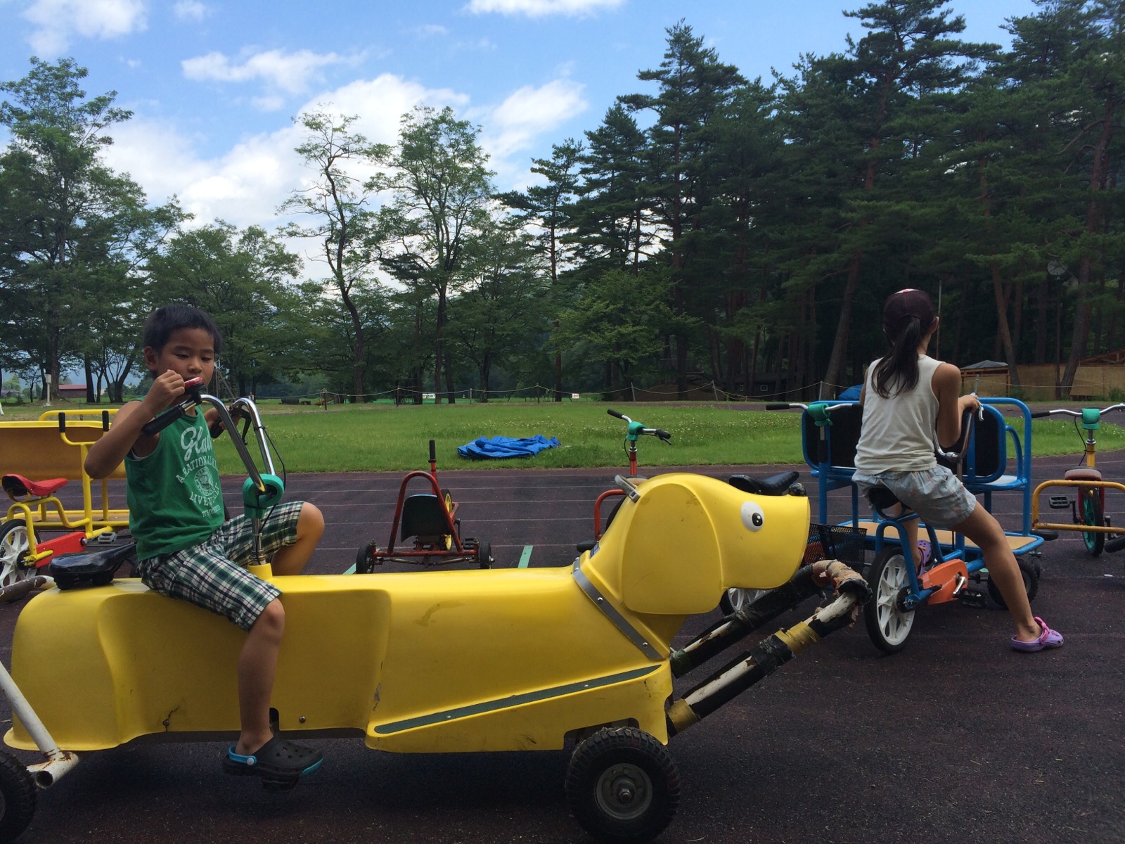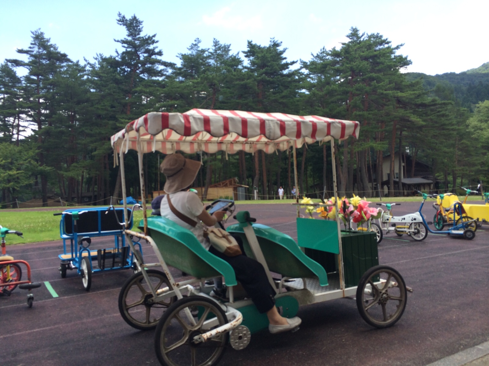 これ、こぎにくいー!笑 体に対して乗り物デカすぎです。 レク、グリーンスポーツの森