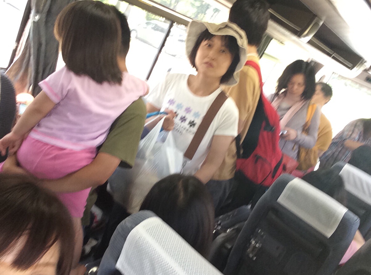 志生子ちゃん、バスチェックイン窓口を終えたと思えば、素早くブロガーに変身ー!