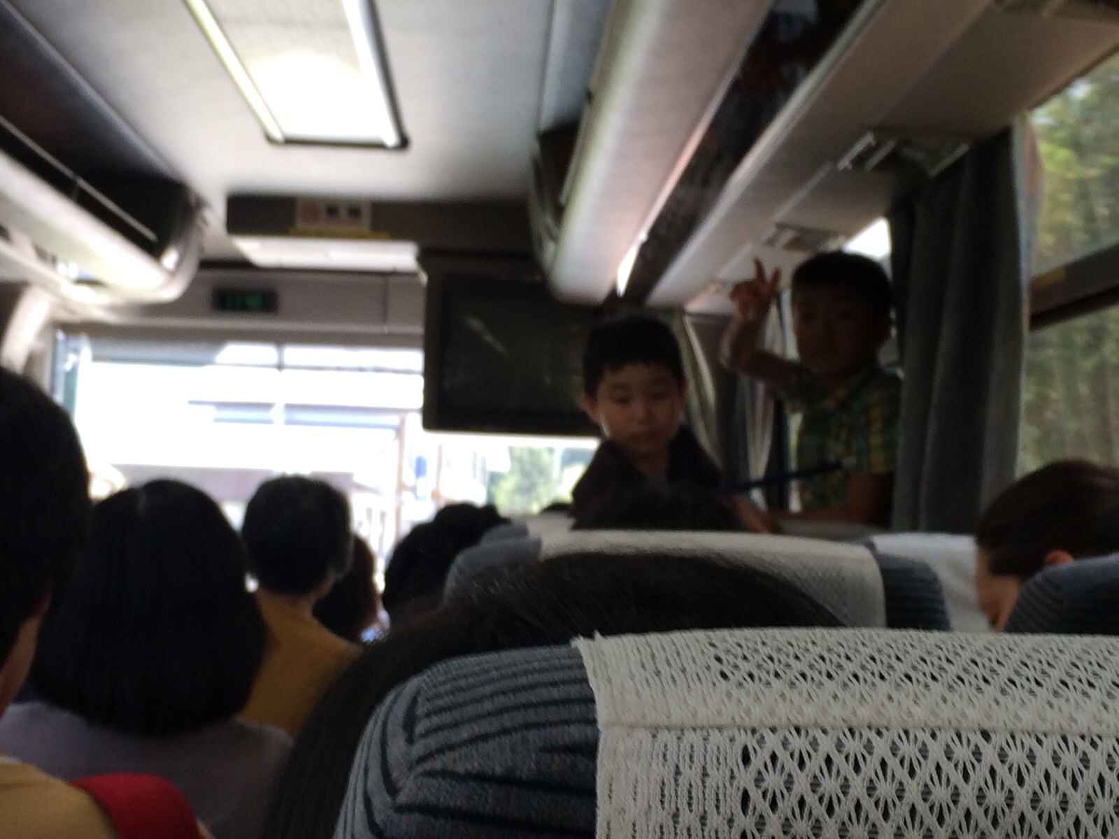 立ってる? 余裕のピース。誰かな? レク、グリーンスポーツの森&ホテル組
