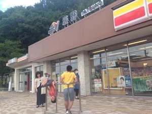 辰野パーキングエリアでトイレ休憩をとりました。 スポーツ少年の大地君が手すりにぶら下がっています( ´ ▽ ` )ノ