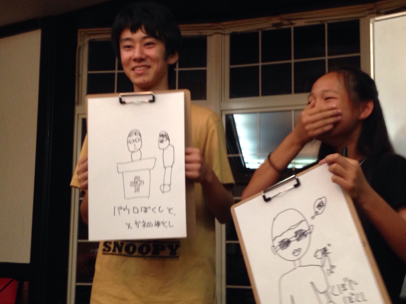 お絵描きゲーム。 お題は何でしょうか? 皆んな力作かな??