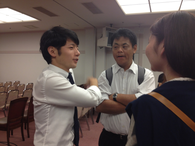 ブログよろしく!と笠原牧師。