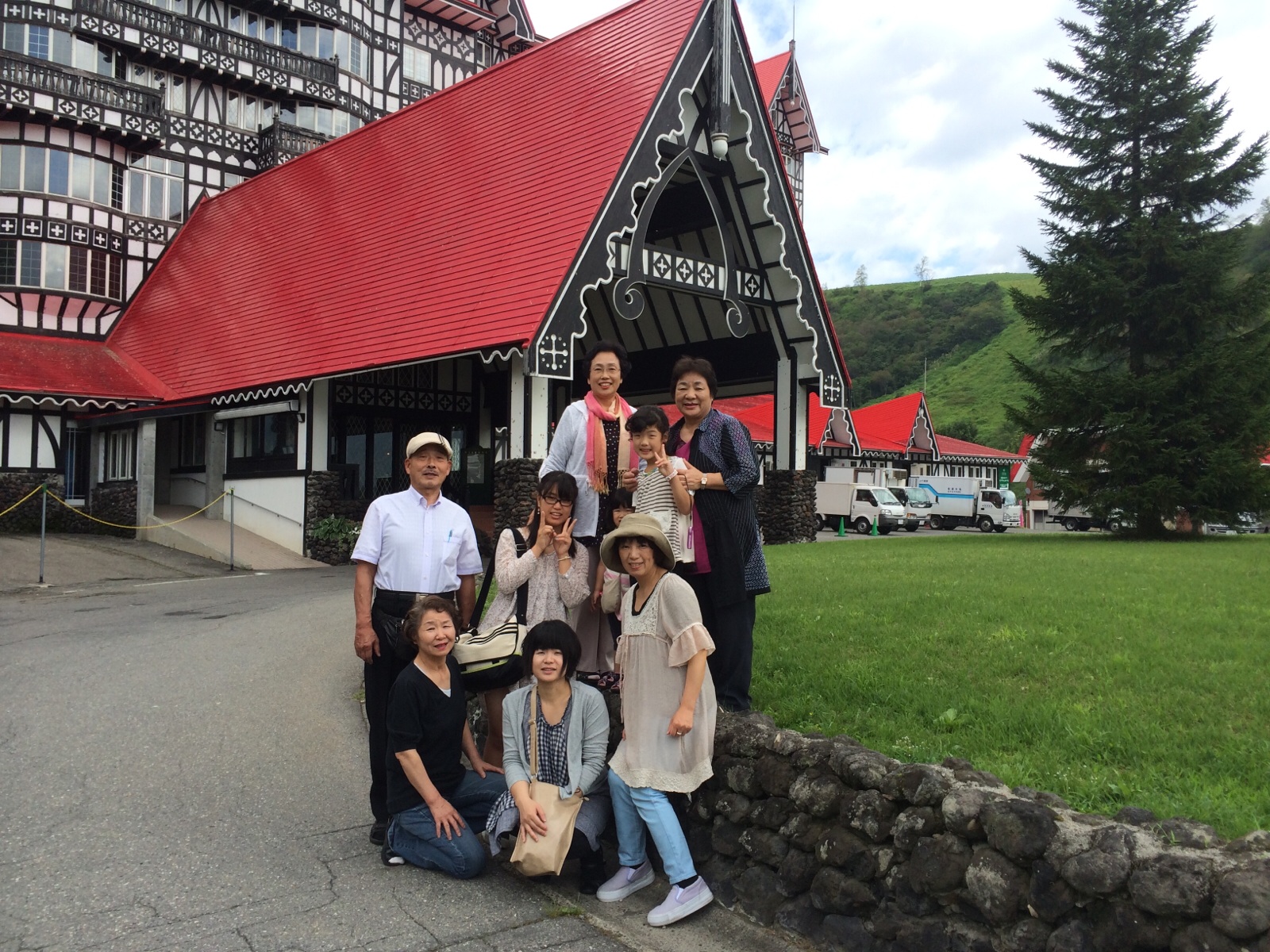 トイレ休憩で立ち寄ったパーキングでの一コマ。宮崎教会のヨシュア南牧師ファミリー! 家族みんなで手を繋いで道を渡る姿に、家族愛を感じました(o^^o)