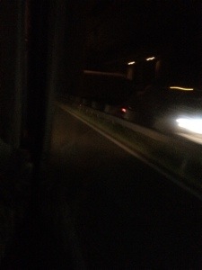 広島の小谷を給油を終え、九州に向け出発しました、暗闇の中ブロガーのアイホンは、光っています。熊本イスラエル