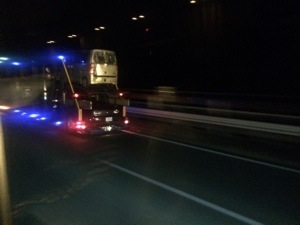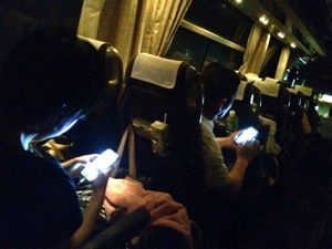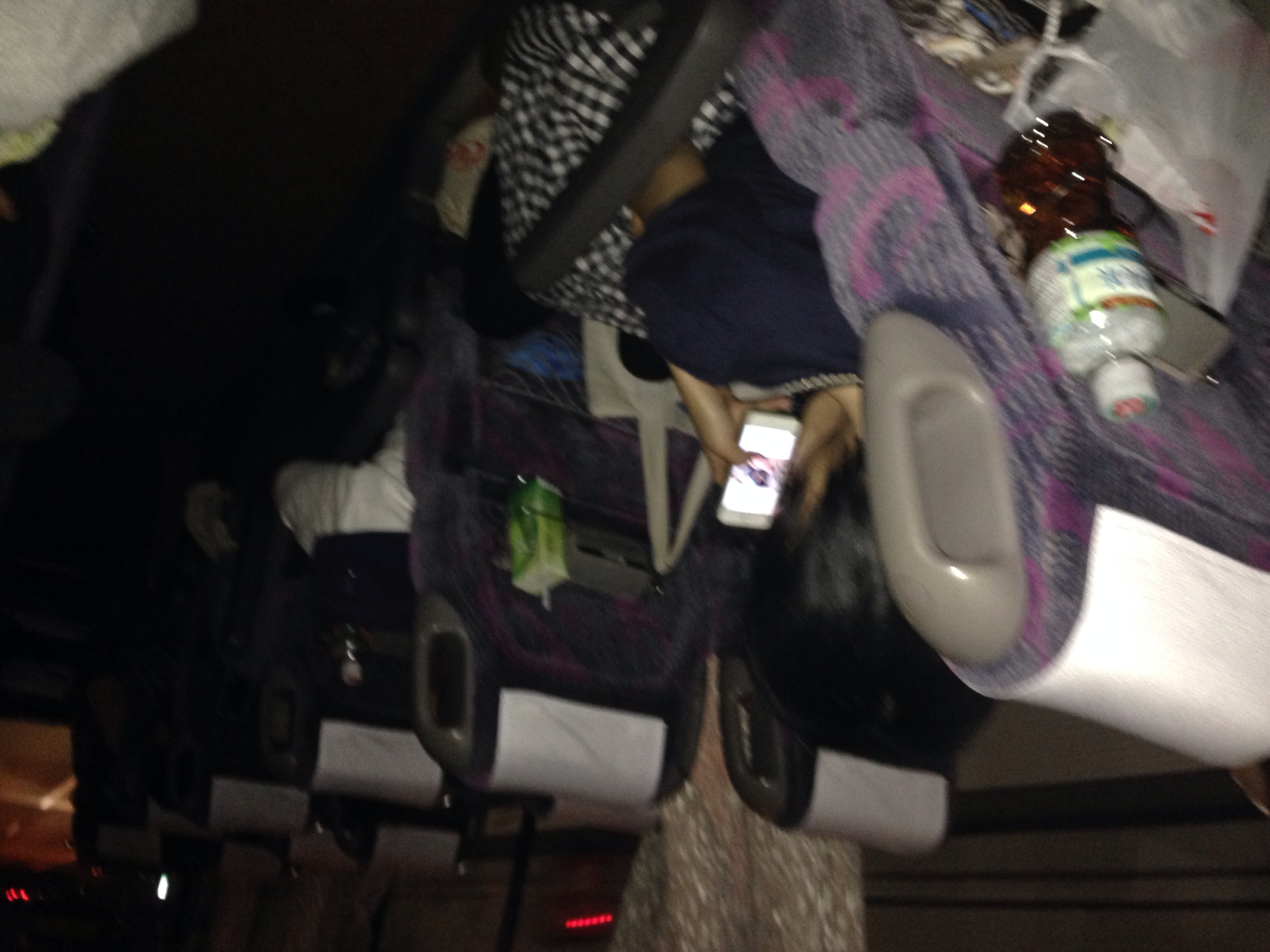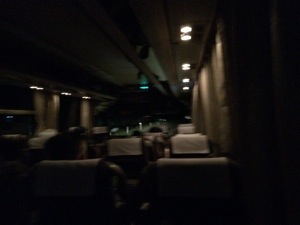 バスから見える高速道路と、 ただいまのバスのなか。 暗いけれど、数時間後には明るくなる♪