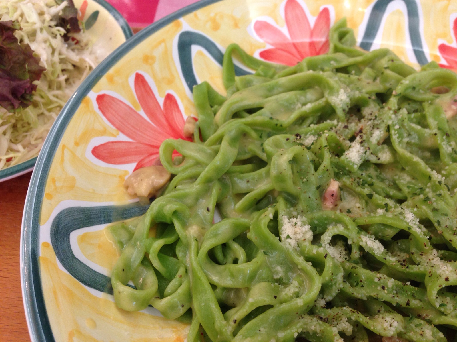 ほうれん草のカルボナーラです! お腹が空きました♪