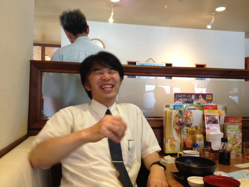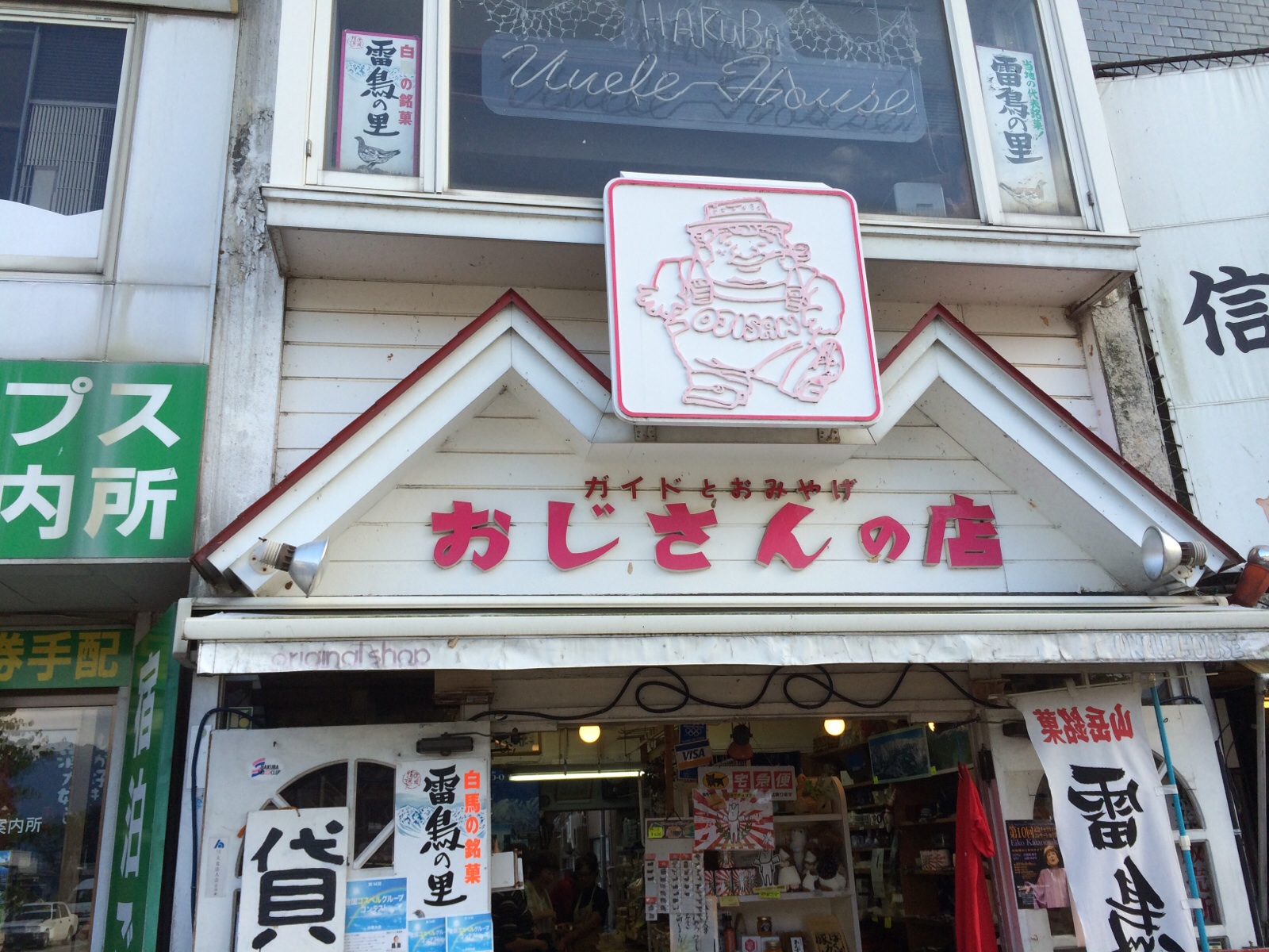 長野市33度.体感温度100度 あっつ〜 写真は、白馬駅のおじさんのお店。 北海道組
