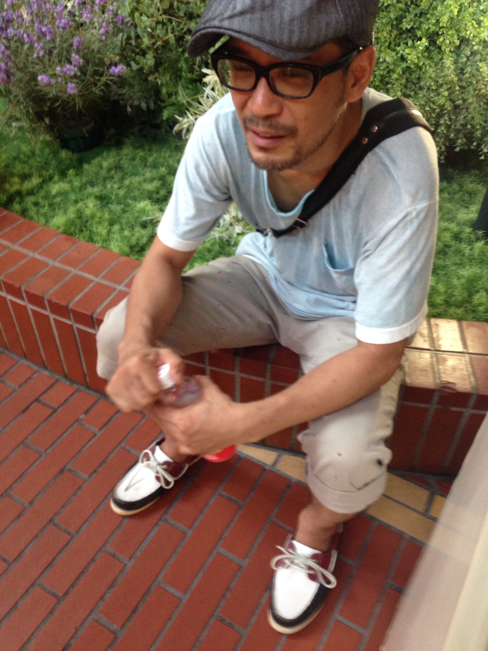 カメラマン高橋さん。撮影をしてきたそうで汗だくです。