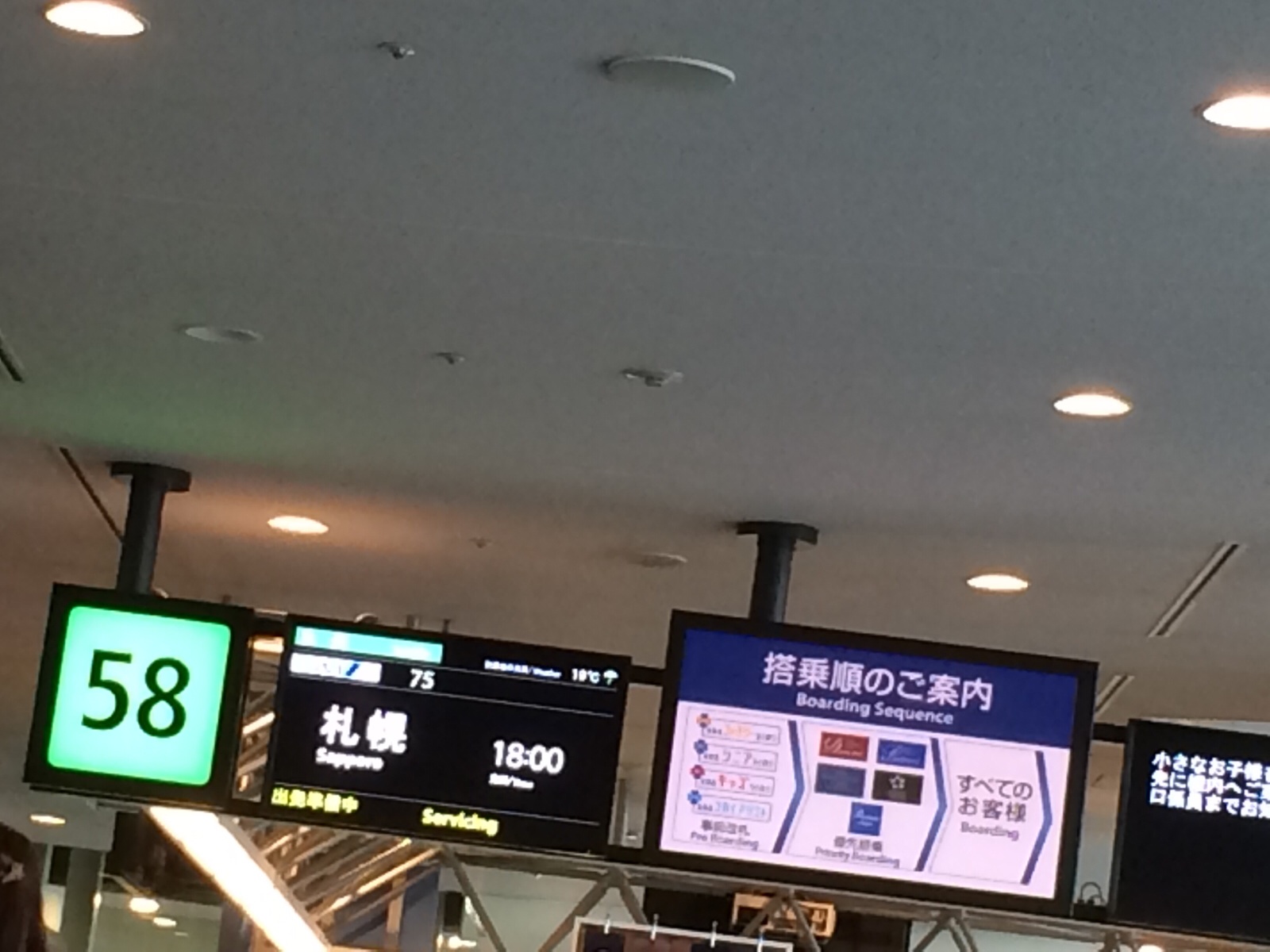 搭乗開始しました。家に着くのは9時頃かな?雨が降って、寒いそうです。( ̄▽ ̄) 北海道組