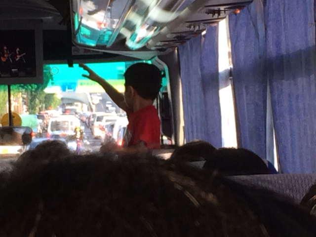 あと10分で渋滞を抜けます。しかしこの並んでる最中に、なんと我ら女子達は、車から降りて、トイレに駆け込んだのでした〜! 柏