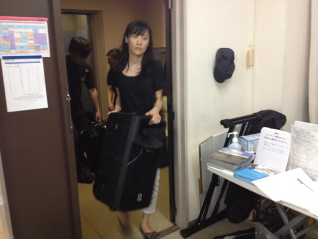 1号車バスは男性が少ない中、たくさんの機材の搬入に女子が活躍しています。