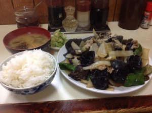 高円寺で一番好きな、キクラゲのダブル入りミックス野菜定食です。まどか